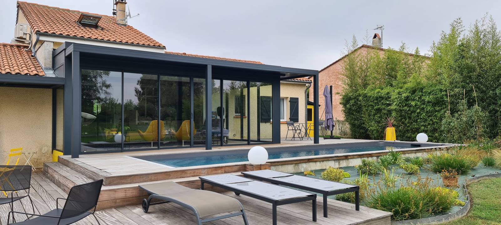 En choisissant la véranda à toit plat en aluminium, Fenêtre et Véranda Toulousaine vous propose donc une solution technique avancée qui permet de réaliser une véritable pièce de vie mieux isolée qu'une véranda classique, tout en optimisant le budget de maçonnerie.
